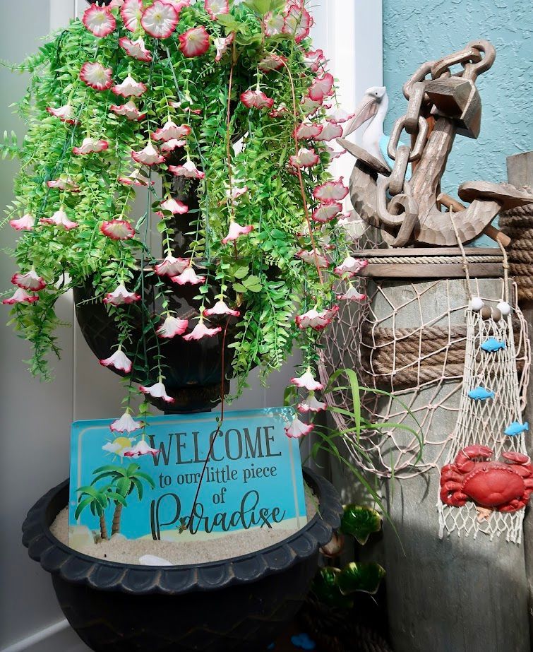 A fenced lanai with sand toys and a mini rock wall provides a safe, fun space for children to enjoy.